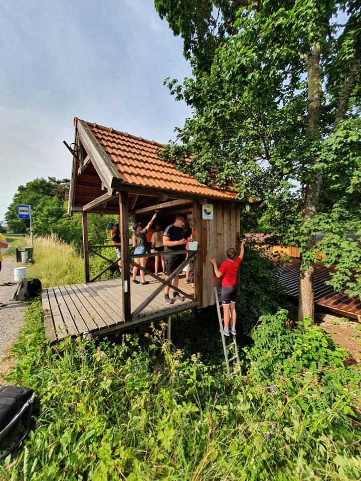 Teisipäev - jätkasime Vihasoo bussipeatuse värvimisega. Lisaks sellele jõudsime immutada Nõmmeveski silda ja alustasime ka ettevalmistustöödega juba Luha bussipeatuses. Lõunaks supp ja saiake ning pealelõunasel ajal mõtlesime oma selle aasta malevalogo. Milline küll sel aastal võiks olla?