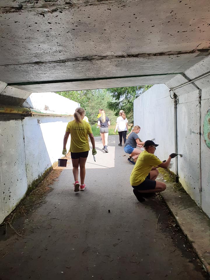 Kiius kõnnitee puhastamine, busside pesu ja koristamine, päraslõunal lõpetamine Kundas Lontova seikluspargis:
